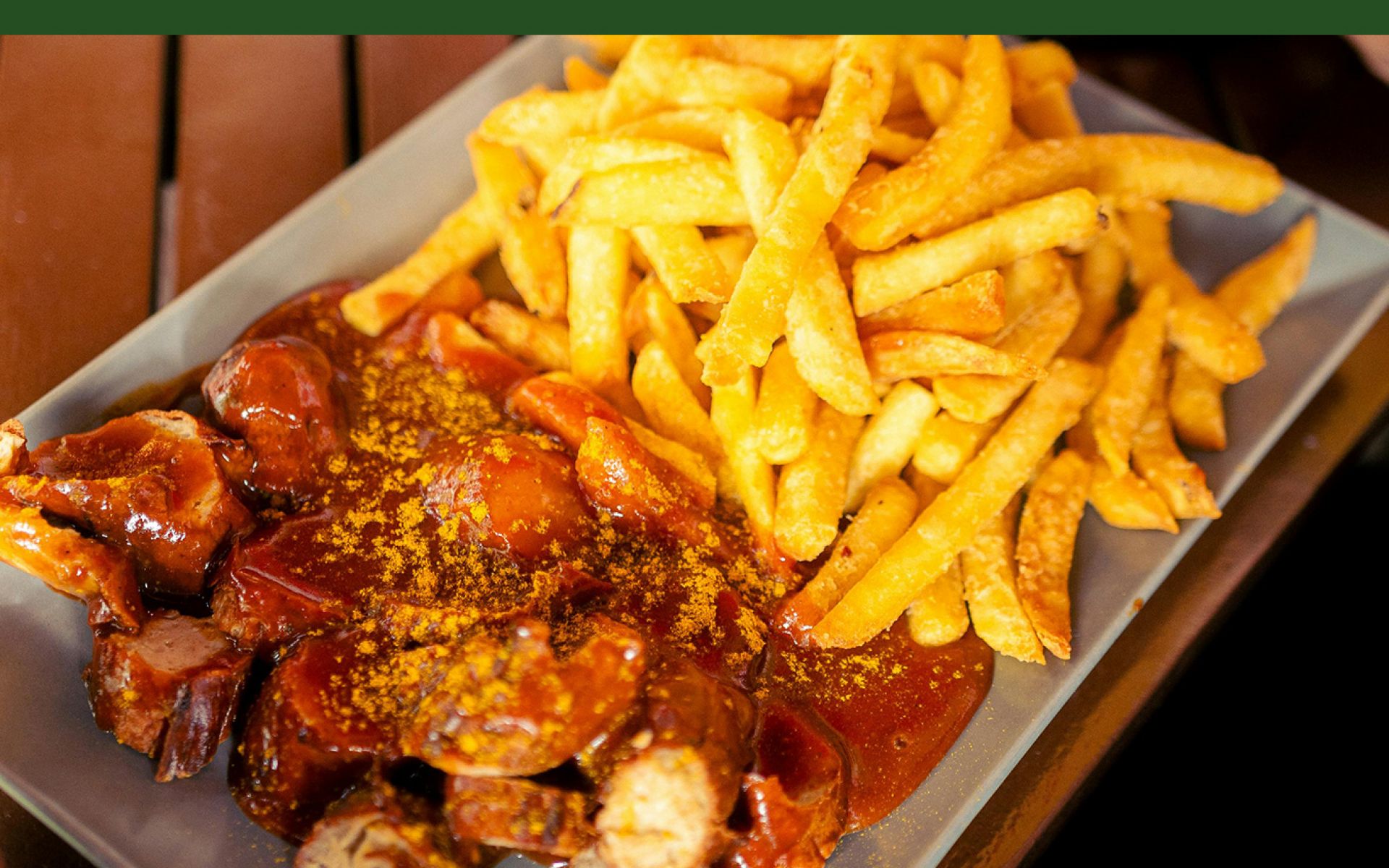 Vegane Currywurst mit Pommes